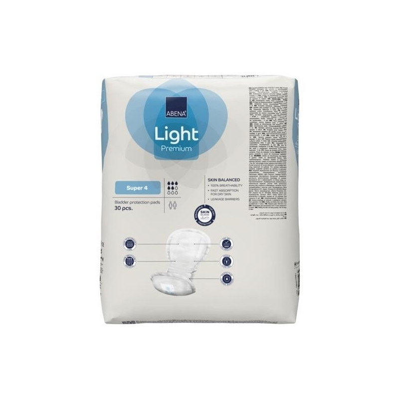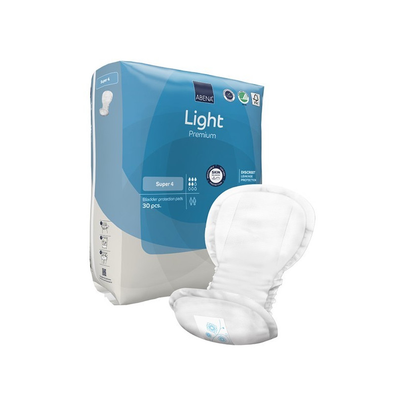 Optimisez votre confort quotidien avec les ABENA Light 4 Super. Disponibles en sachets pratiques de 30 protections, pour une gestion efficace et hygiénique de l'incontinence modérée à abondante.
