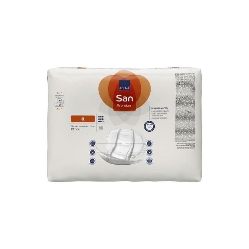 ABENA San 8 préserve l’équilibre cutané, une fonction 3-en-1 : la combinaison d’une protection 100% respirante, dotée d’une technologie absorbante et de maintien au sec optimale et de multiples dispositifs contre les fuites permet de protéger et préserver la peau, même après plusieurs mictions.