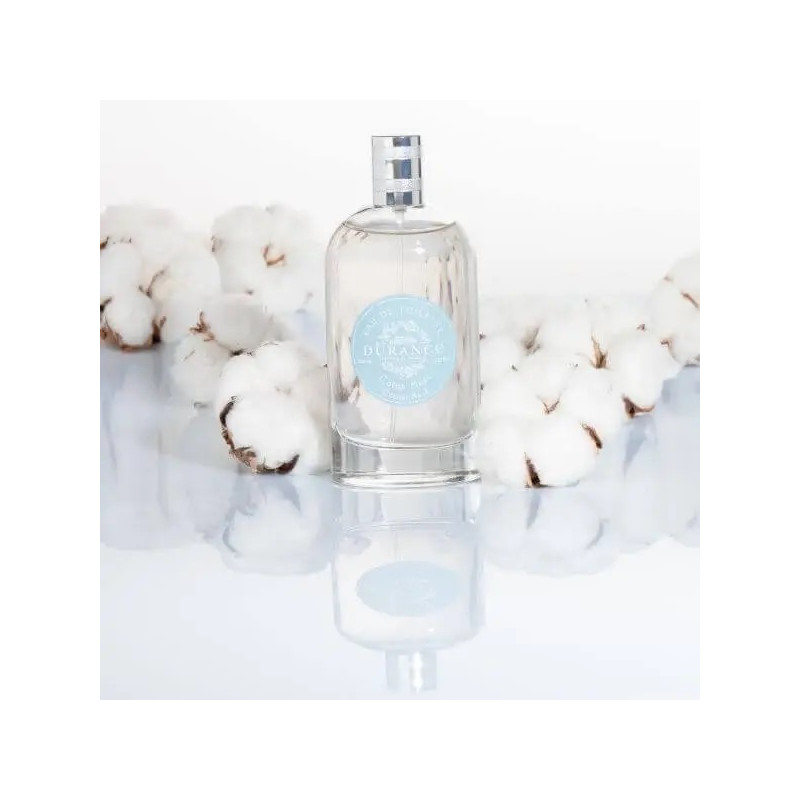 L’eau de toilette Coton Musc traduit la pureté du coton par un aspect floral poudré assez frais (rose, violette, héliotrope).